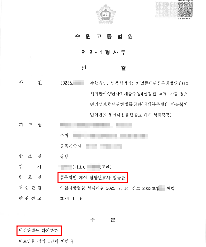 그 결과 너무나 다행스럽게도 재판부는 법무법인 재이의 주장을 모두 받아들여 피고인에게
