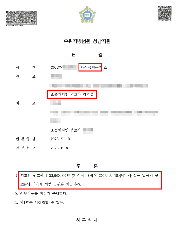 이러한 법무법인 재이의 조력으로 이 사건 소송에서 전부 승소라는 결과를 이끌어 내었습니다.