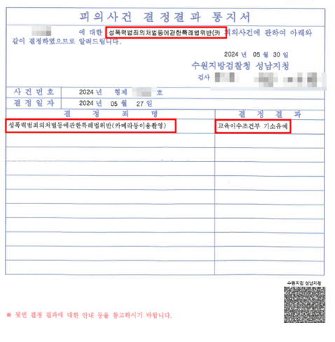 성폭력처벌법 카메라등이용촬영 기소유예 성공사례