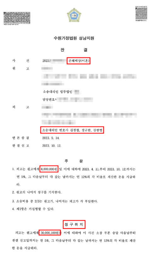 본 사안은 의뢰인(피고)이 상대방(원고)으로부터 그 배우자와의 부정행위를 원인으로 하여 손해배상청구(이하 '이 사건 청구')를 제기 당하여 법무법인 재이를 찾아온 사안입니다.